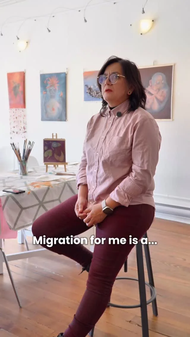 Shared Flight Collective is a collaboration between three multidisciplinary immigrant artists: Diana Olarte, Doro Buch, and Claudia Chagoya. Brought together by a shared experience of migration and a commitment to dialogue across borders, our collective explores the intersections of personal histories, identity, and transformation through art. Working across diverse media—including painting, installation, projection mapping, and mixed 2D/3D forms—we draw on our varied cultural backgrounds and artistic practices to create a