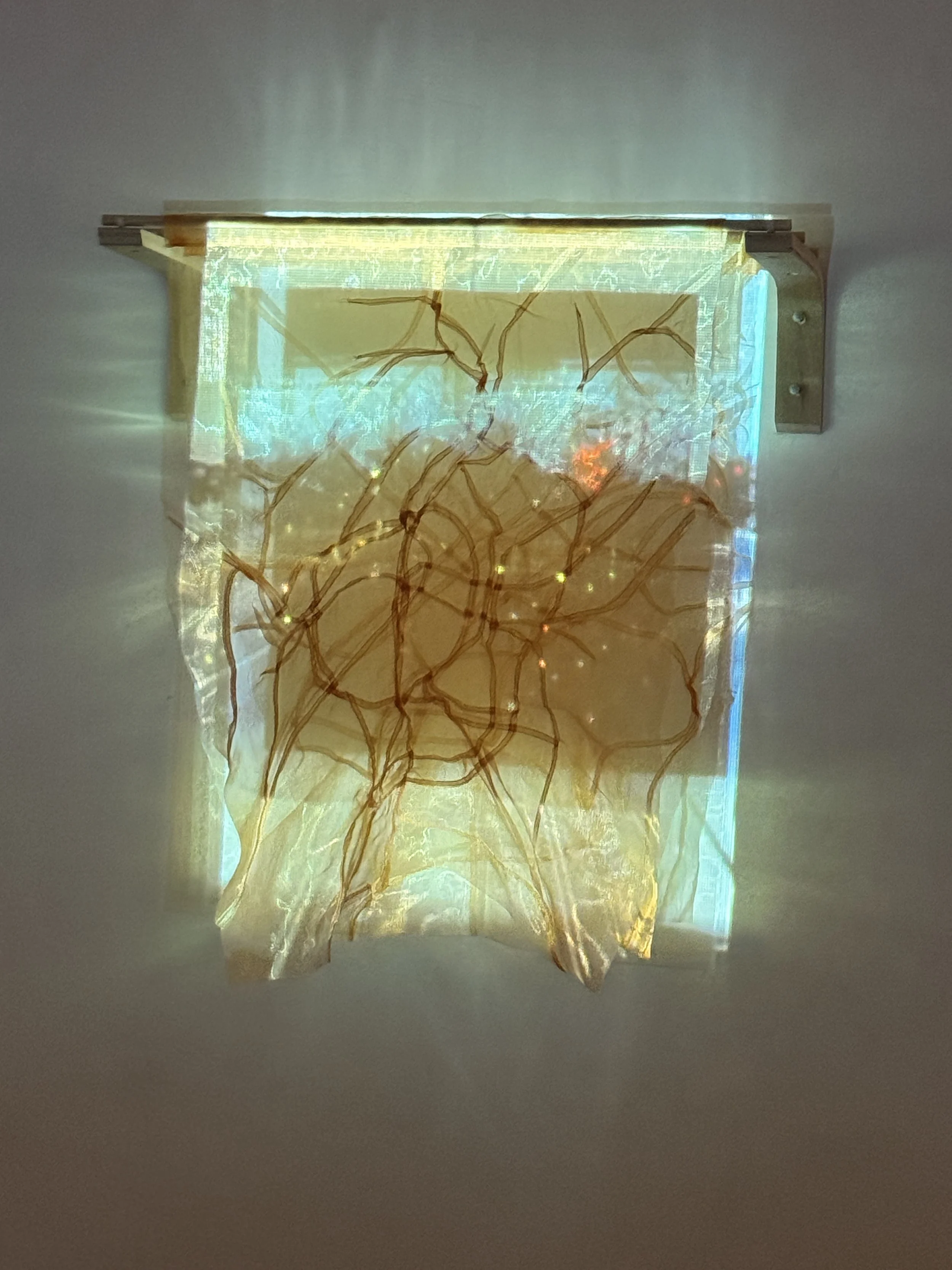 transformation and the beauty that can emerge from memory and decay. With a push to create interactive work, Ryan breaks the bounds of typical gallery expectations, encouraging the viewers to get up close and personal with many of her works, inspiring people to shift how they interact with art in the everyday. Utilizing found fabrics and footage Ryan intertwines the mediums into something new and exciting while paying homage to what came before.