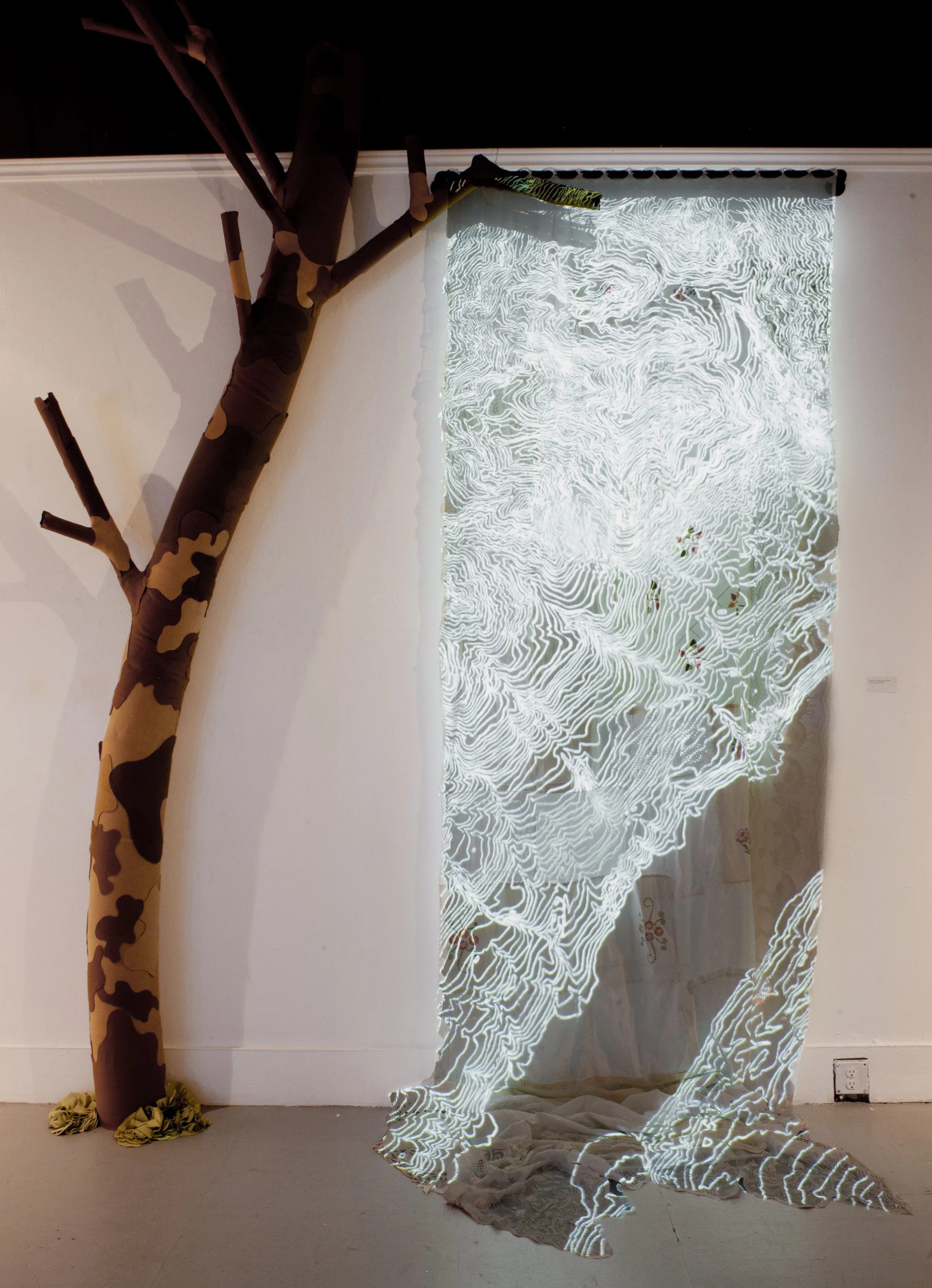 Ellie Ryan is a textile and expanded media artist who has worked and exhibited internationally. Equipped with a projector and sewing machine she bridges the gap between traditional and expanded mediums to create layered environments that invite viewers to reflect on loss,